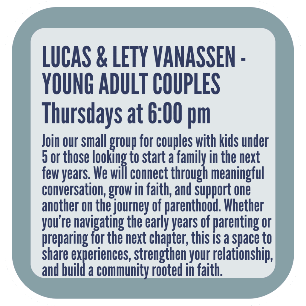 If you would like to get plugged into a small group but don’t see one that fits with your schedule currently, please call the Parish Office at (616) 453-6369 and speak to Michael or MacKenzie, or email MacKenzie at mcoble@hsparish.org.