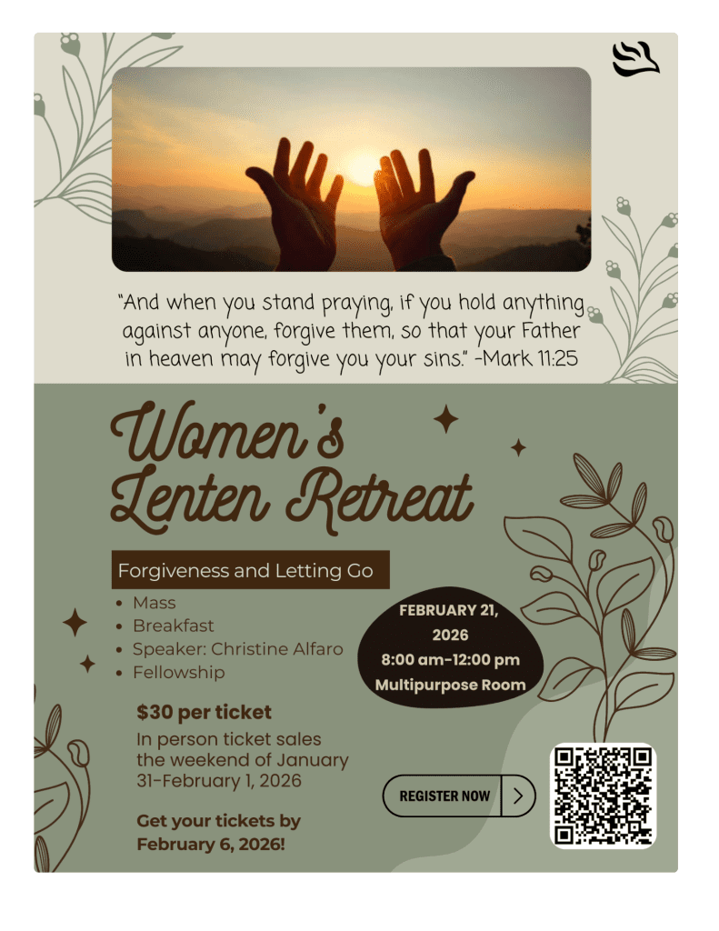 Tickets will also be sold in the Narthex after all Masses on the weekend of January 31-February 1. Limited spots available, so don’t delay!